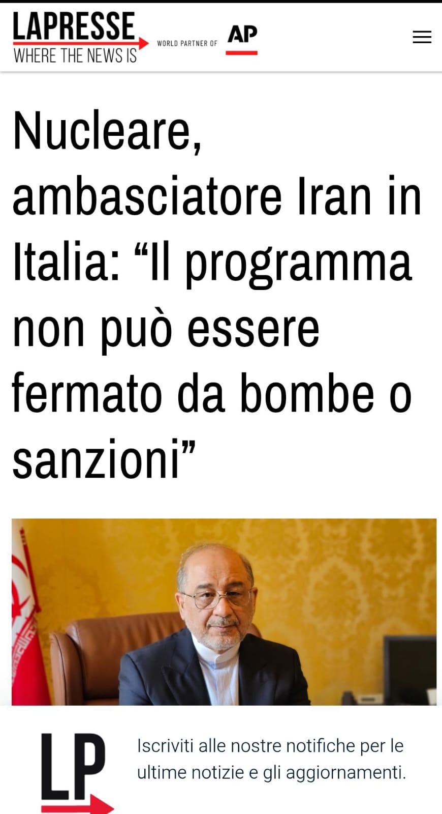 مصاحبه سفیر ایران در ایتالیا با روزنامه لاپرس: ادعای احیای قطعنامههای شورای امنیت باطل و ...