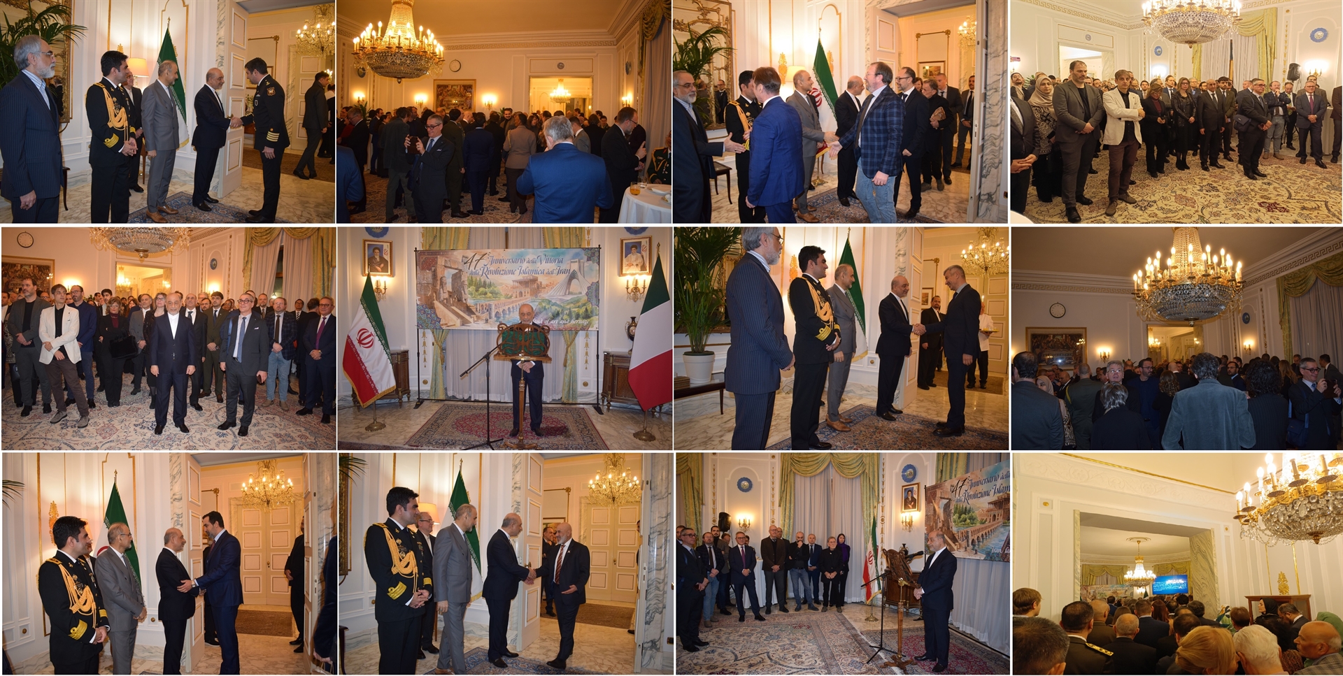 مراسم روز ملی و بزرگداشت چهلوهفتمین سالگرد پیروزی انقلاب اسلامی ایران در شب ۲۲ بهمن ۱۴۰۴ با حضور سفرا، دیپلماتهای خارجی، اساتید دانشگاه، صاحبنظران، اصحاب رسانههای ایتالیا و ایرانیان مقیم در رم برگزار شد. محمدرضا صبوری، سفیر ایران در ایتالیا، در سخنانی با اشاره به وقوع انقلاب اسلامی اظهار داشت که انقلاب اسلامی ایران، تجلی اراده ملتی بود که در سال ۱۳۵۷ با اتکا به ایمان، هویت تاریخی و خواست استقلالطلبانه خود، بر دیکتاتوری وابسته و رژیمیکه منافع بیگانگان را بر اراده مردم ترجیح میداد، پیروز شد.