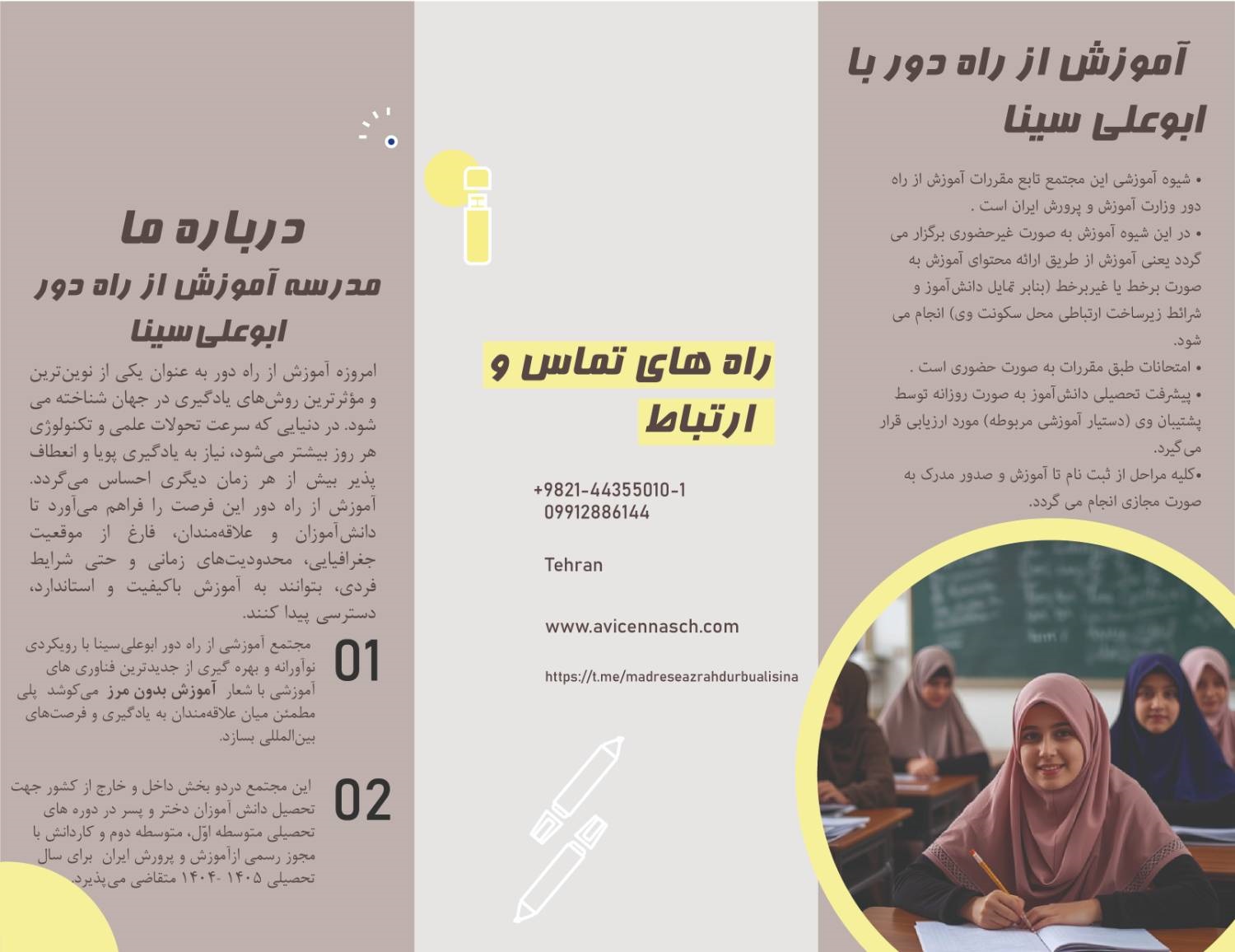 در راستای بهره مندی فرزندان ایرانیان مقیم خارج از کشور از آموزش از راه دور، مدرسه آموزش از راه دور خارج از کشور "ابوعلی سینا" مورد تایید وزارت آموزش و پرورش جمهوری اسلامی ایران جهت استفاده این عزیزان معرفی میگردد.