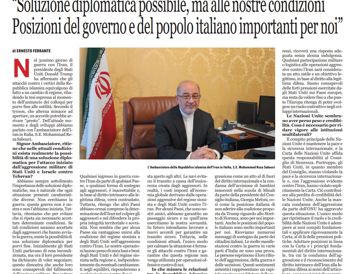 متن مصاحبه سفیر جمهوری اسلامی ایران در رم با رسانه لیدنتیتا