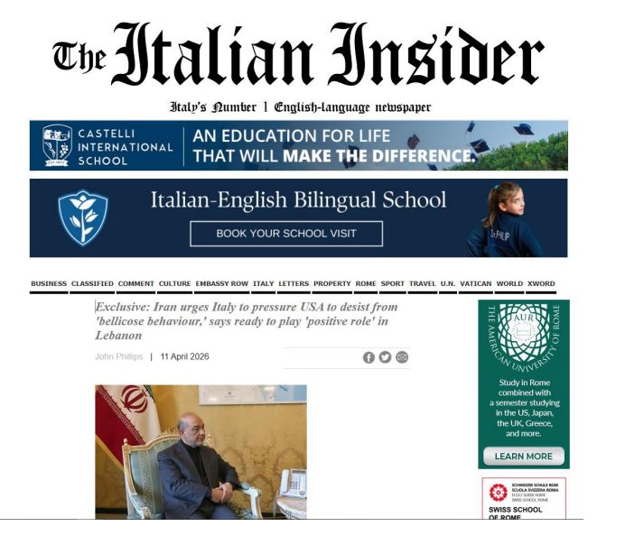 مصاحبه سفیر جمهوری اسلامی ایران در رم با رسانه اینسایدر